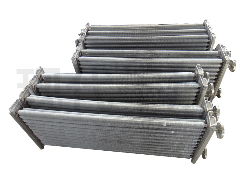 翅片式散热器主要由空气流向间的三排并列螺旋翅片管整组成,SRZ型散热翅片管束的加工工艺是把0.5*10毫米无缝钢管上,然后进行热镀锌,也可用不锈钢管及不锈钢制成全不锈钢散热器,SRL型散热器则是用钢管和铝带轧制的翅片散热器,其单位长度的散热面积比SRZ型的更大。 因采用机械张片,散热翅片与散热管接触面大而紧,传热性能良好、稳定,空气通过阻力较小,蒸气或热水流经钢管管内,热量通过紧绕在钢管上翅片传给经过翅片的空气,达到加热和冷却空气的作用。