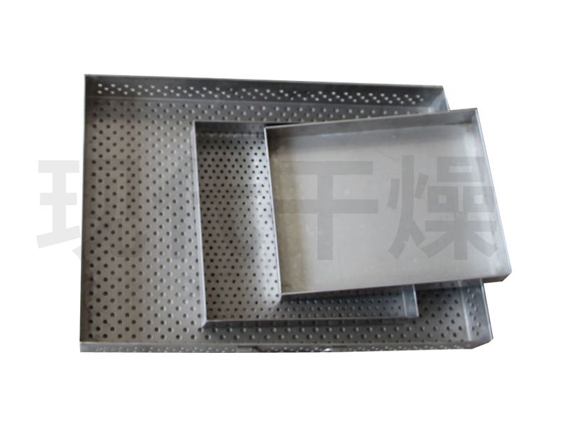 烘盘,又名托盘、烤盘,是指在干燥箱中盛放物料的器具,一般由金属制成。在工业生产,烘盘一般不单独使用,均装备在烘干箱、真空烘箱等设备中一起工作。目前广泛使用在制药、化工、食品、农副产品等行业的烘盘,根据使用材质的不同,主要由不锈钢、铝合金等两大类(也有少量的铁制烘盘,用于外壁上搪瓷);根据外形的不同,可分为无孔盘和打孔盘;根据加工方式的不同,主要由手工盘和一次成型压制烘盘。