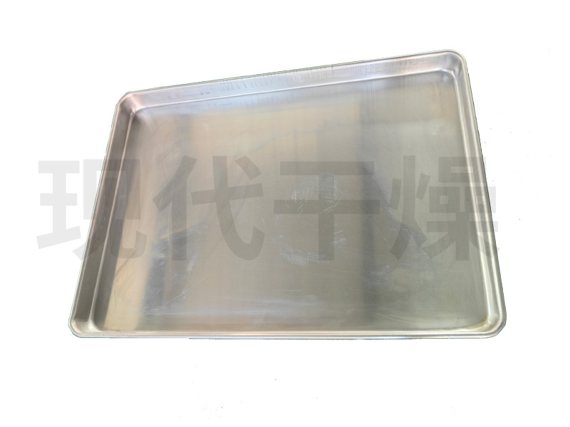 在上述各烘盘中,又以一次成型压制烘盘最为普遍,尺寸为640×460×45mm,主要由不锈钢或铝合金通过一次成型的方式压制而成,其角落光滑、四周翻边,保证了清洗彻底,及容易端托的优点,因而广泛使用在生产中。